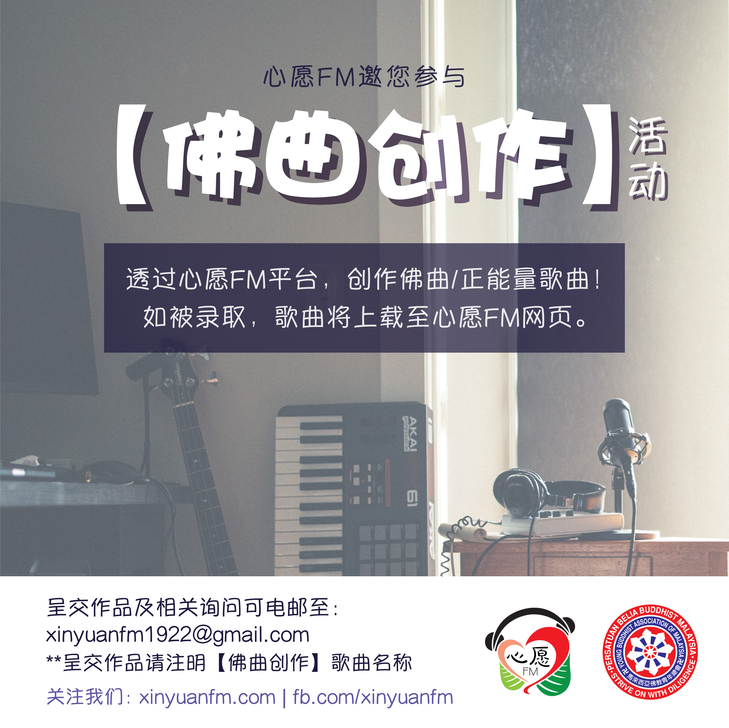 鼓励大众创作佛曲及正能量歌曲,在这里可以听到朋友们的歌曲创作!